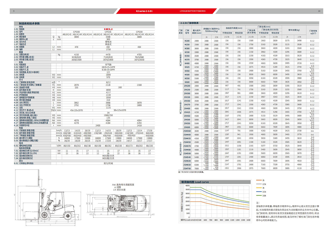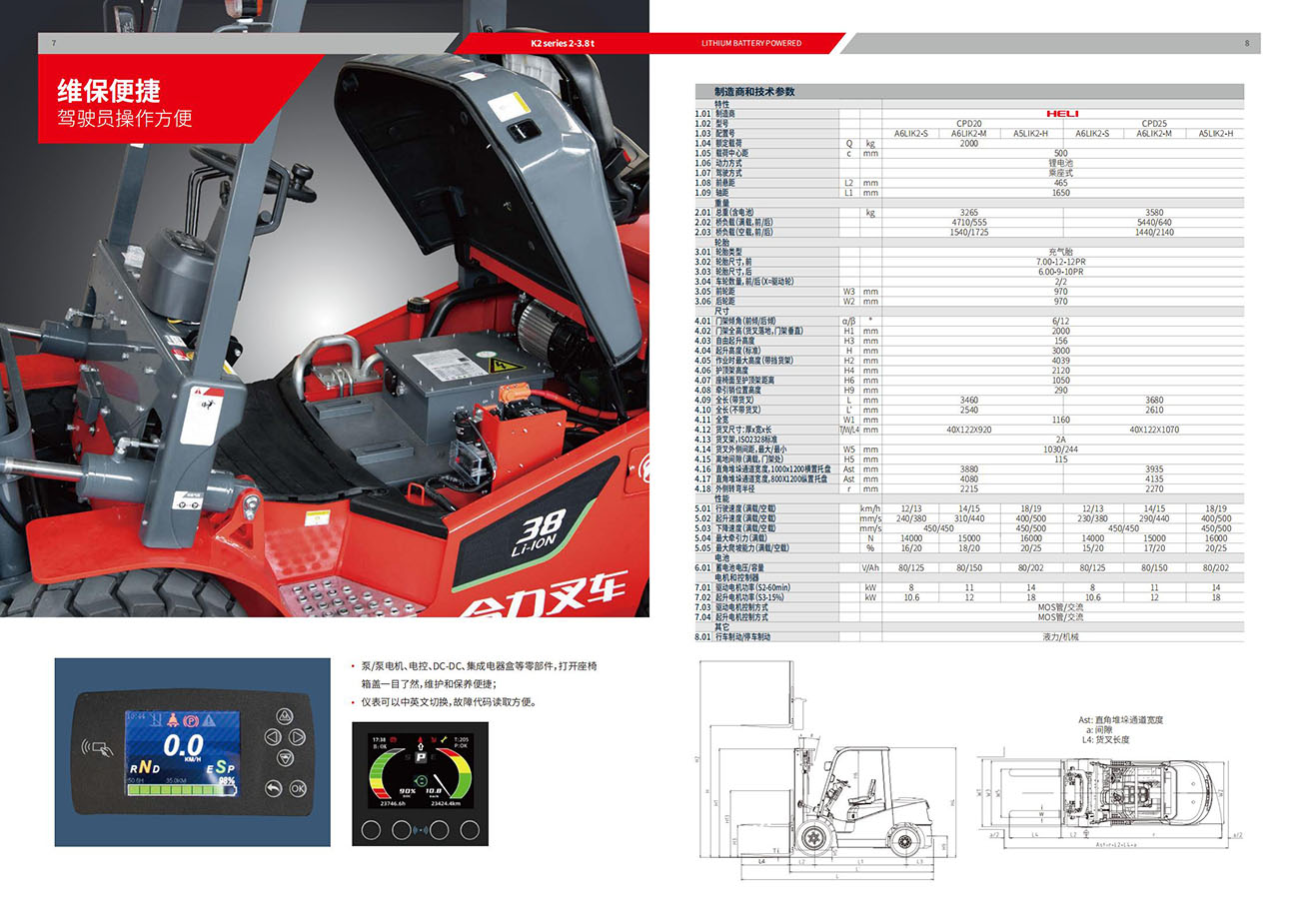 2-3.8t K2系列鋰電池平衡重式叉車
