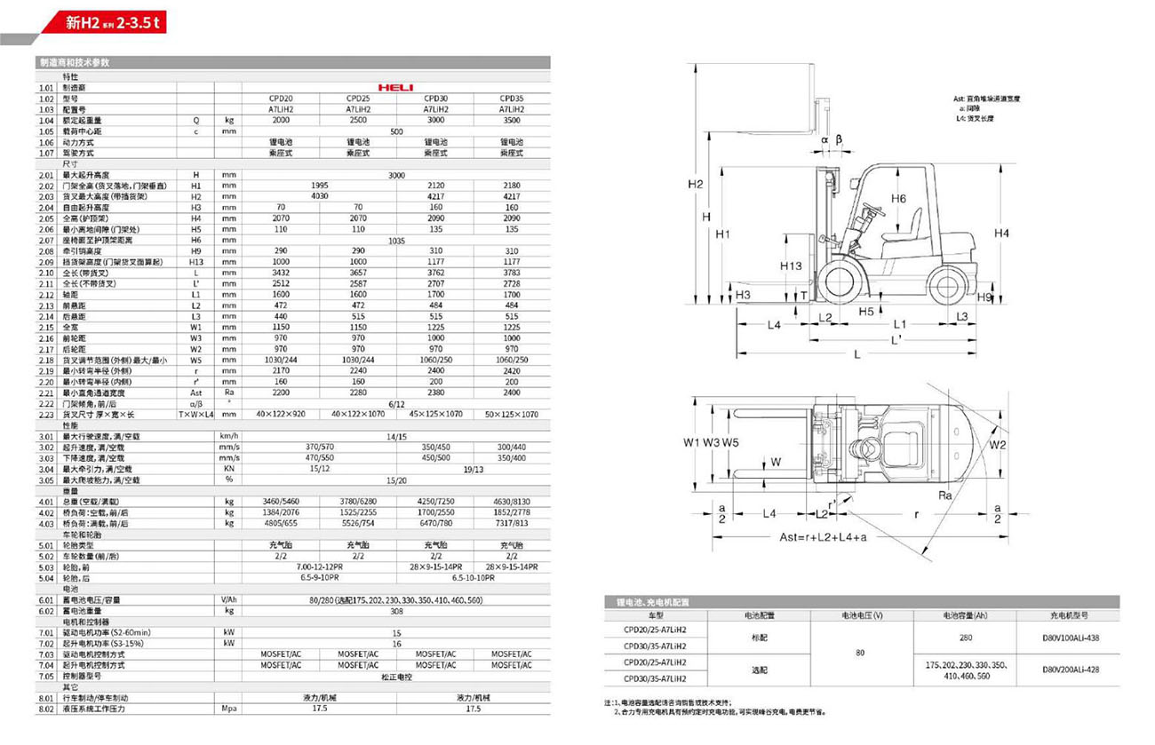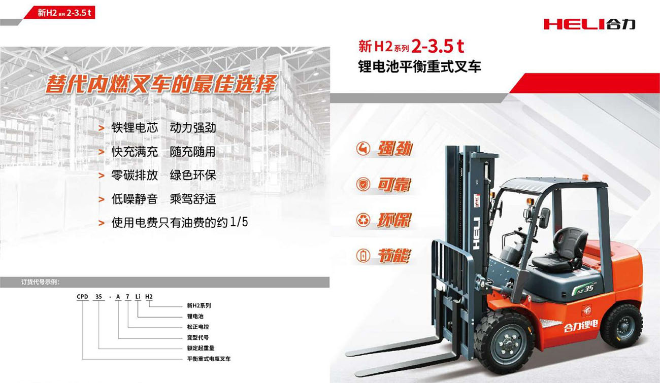 新H2系列 2-3.5 t 鋰電池平衡重式叉車